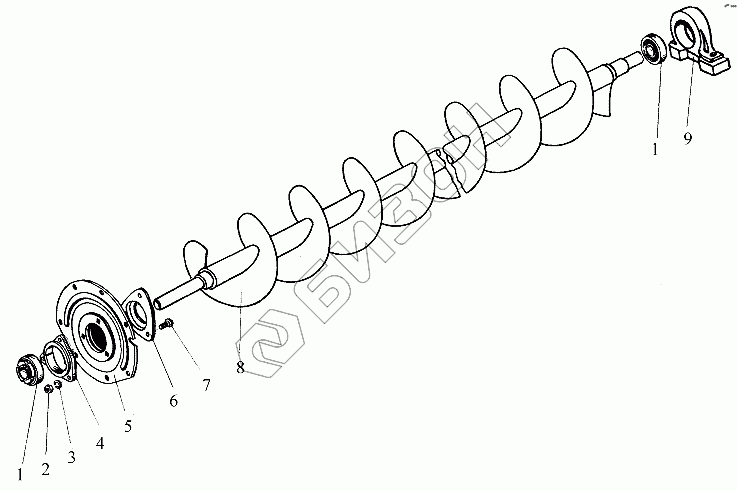 Графический каталог запасных частей к технике: КЗК Енисей КЗС-950. Шнек бункера Р6-2ПМ