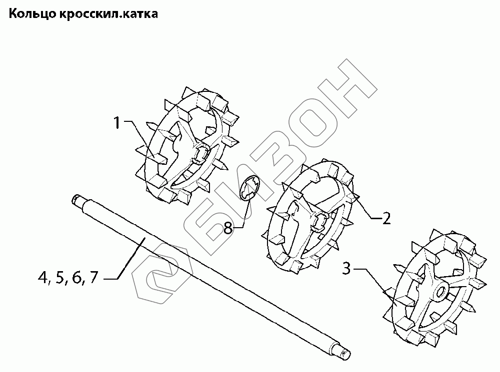 | 1 | 423 9011 | Кольцо кросскил.катка D400x125-LI |