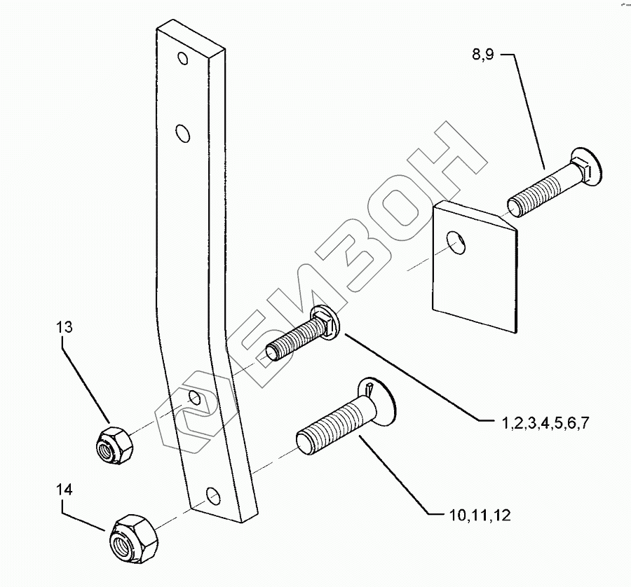 Графический каталог запасных частей к технике: Lemken EuroDiamant 10 X. Bolts for leg Dural