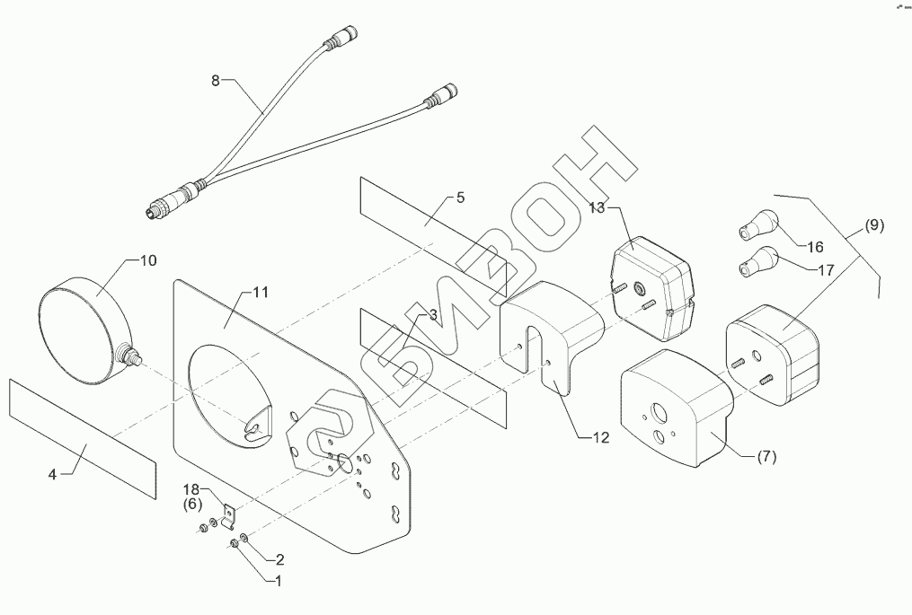 Графический каталог запасных частей к технике: Lemken Heliodor 9/700KA. 57010022 Lighting unit