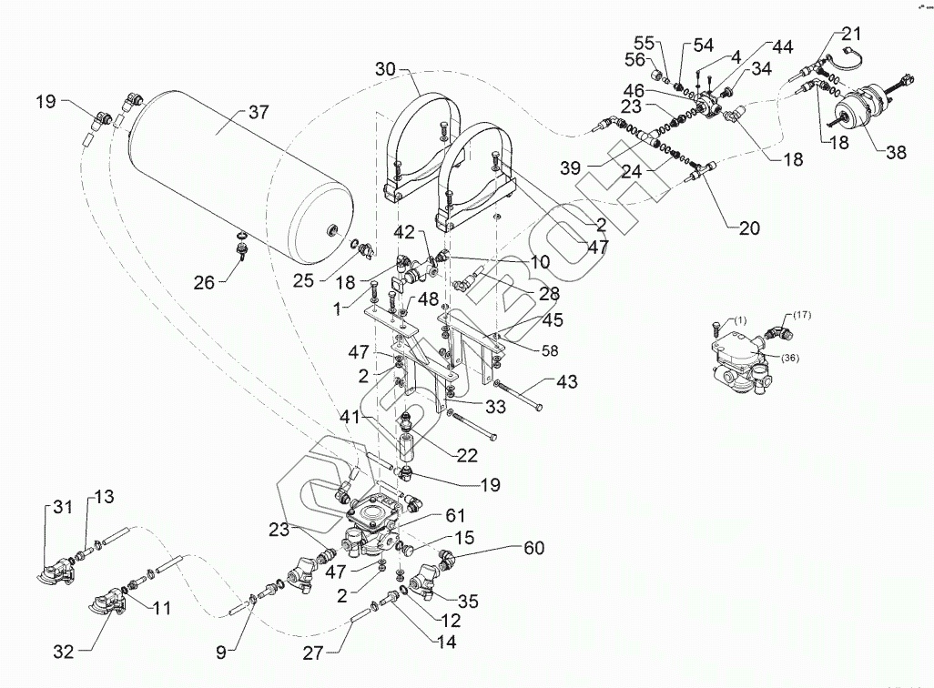 Графический каталог запасных частей к технике: Lemken Kristall 9/600KA. 67710009 Compressed-air brake