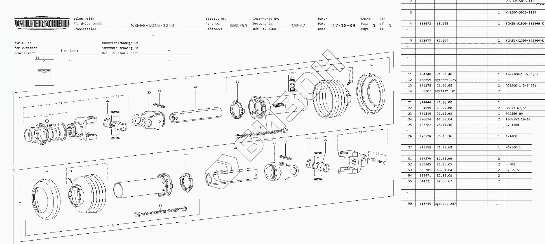 Графический каталог запасных частей к технике: Lemken Primus 10 (Часть 1). R001129 Cardan shaft