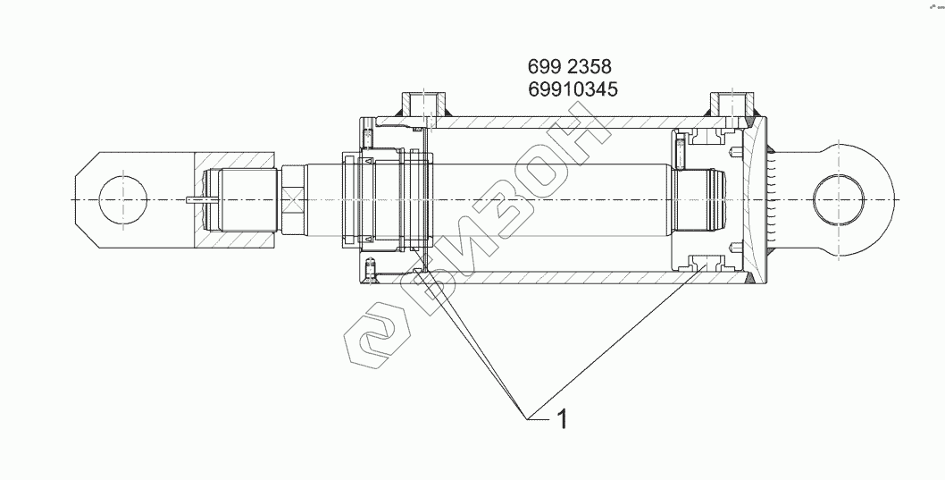Графический каталог запасных частей к технике: Lemken Rubin 12/700 KUA. 5752263 Hydraulic ram