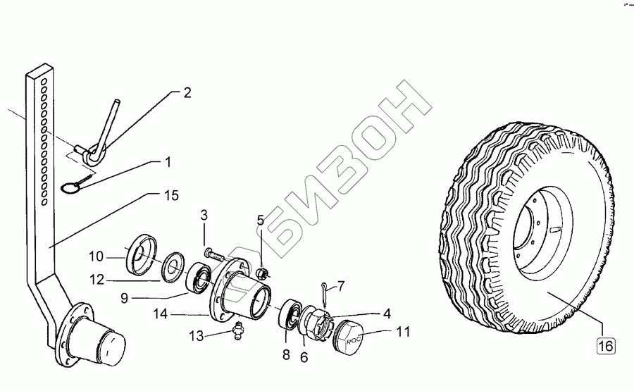 Графический каталог запасных частей к технике: Lemken Smaragd 9/500K. Depth wheel 195 R15 70x30