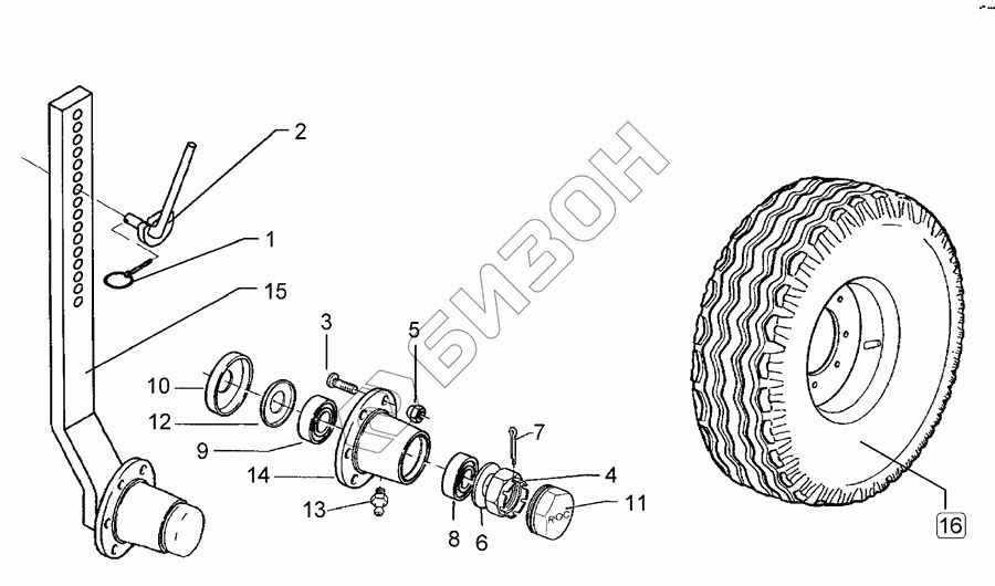 Графический каталог запасных частей к технике: Lemken Smaragd 9/600K. Depth wheel 195 R15 70x30