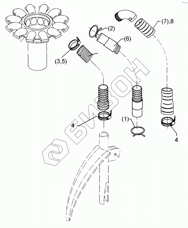 Графический каталог запасных частей к технике: Lemken Solitair 12/1200K. Flexible hose D25x1100 1xD30