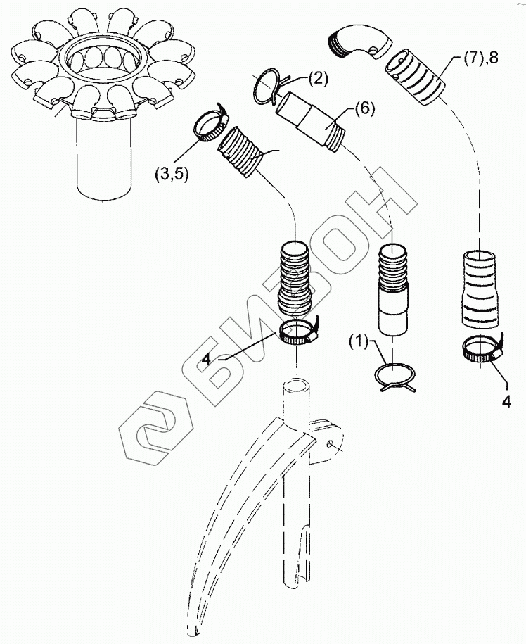 Графический каталог запасных частей к технике: Lemken Solitair 9/400K. Flexible hose D25x1100 1xD30