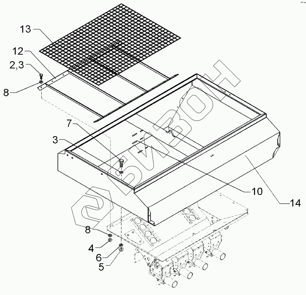 Графический каталог запасных частей к технике: Lemken Solitair 9/400K. Hopper 1100l (170cm)