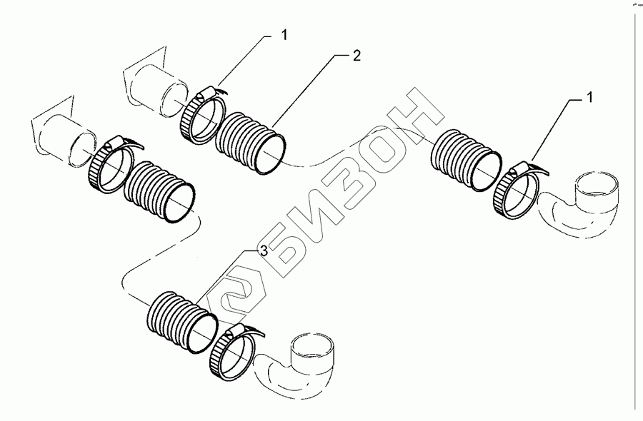 Графический каталог запасных частей к технике: Lemken Solitair 9/450KA. Supply hoses D65 2x1150 2x1580