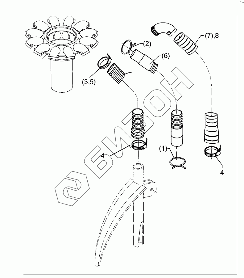 Графический каталог запасных частей к технике: Lemken Solitair 9/500K. Flexible hose D25x1100 1xD30