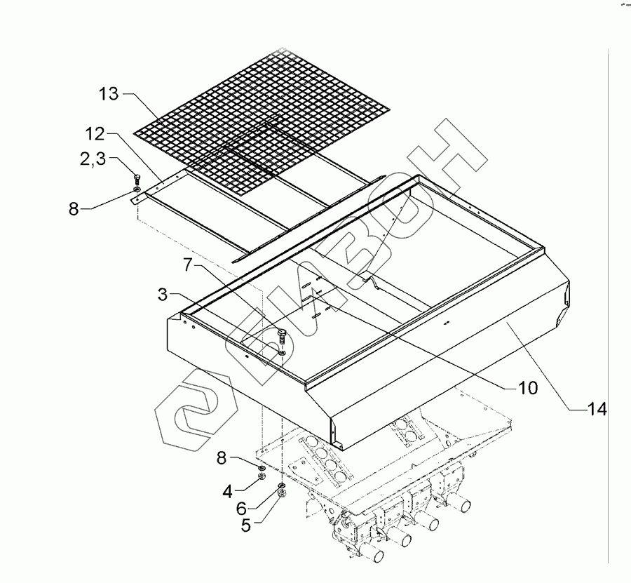 Графический каталог запасных частей к технике: Lemken Solitair 9/500K. Hopper 1100l (170cm)