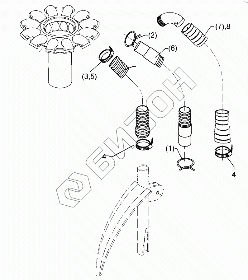 Графический каталог запасных частей к технике: Lemken Solitair 9/500KA. Flexible hose D25x1100 1xD30
