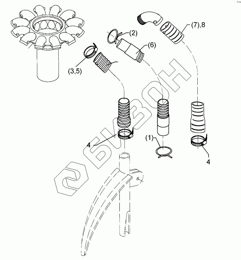 Графический каталог запасных частей к технике: Lemken Solitair 9/600KA. Flexible hose D25x1150 1xD30