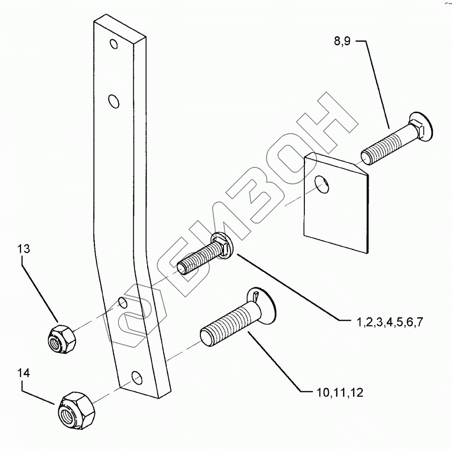 Графический каталог запасных частей к технике: Lemken Vari-Turmalin 10. Bolts for leg Dural
