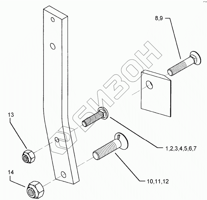 Графический каталог запасных частей к технике: Lemken VariOpal 8. Bolts for leg Dural