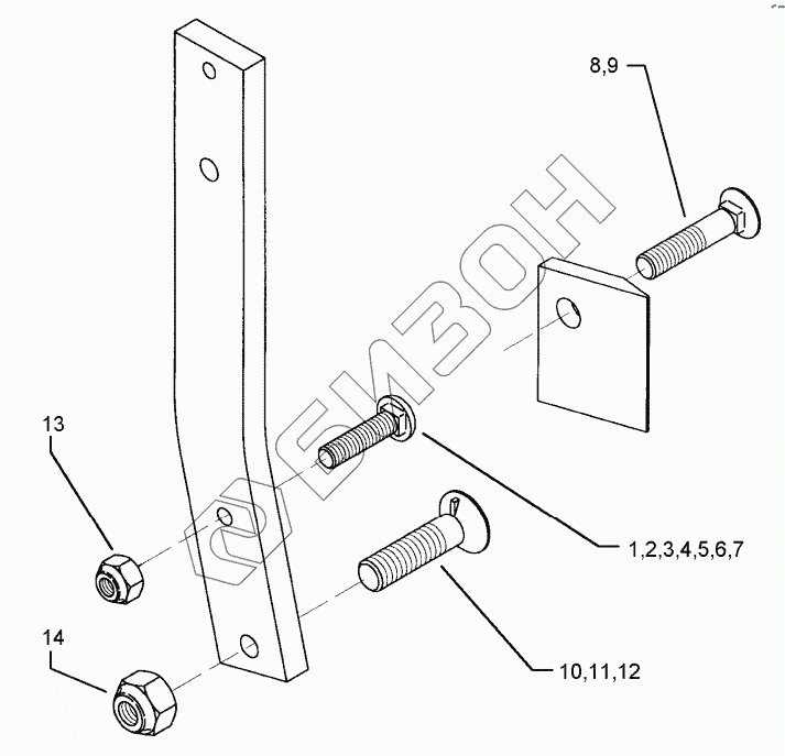 Графический каталог запасных частей к технике: Lemken VariOpal 8X. Bolts for leg Dural