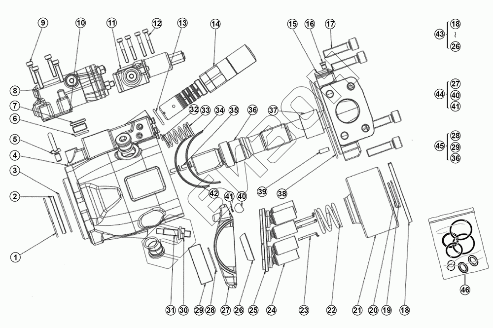 | 24 | Piston and sliding shoe kit 210000302687 | Комплект поршня и скользящего башмака 210000302687 |