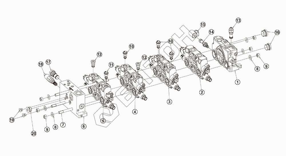 Графический каталог запасных частей к технике: LGMG HA735. Коллектор главного клапана ax32085-60