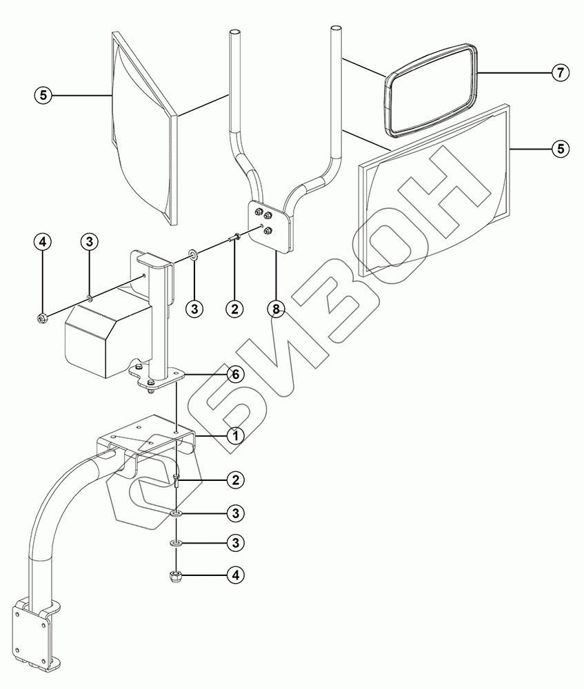 Графический каталог запасных частей к технике: LGMG HA735. Установка  правых зеркал заднего вида