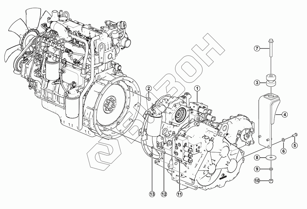 Графический каталог запасных частей к технике: LGMG HA735. Установка КПП трансмиссии