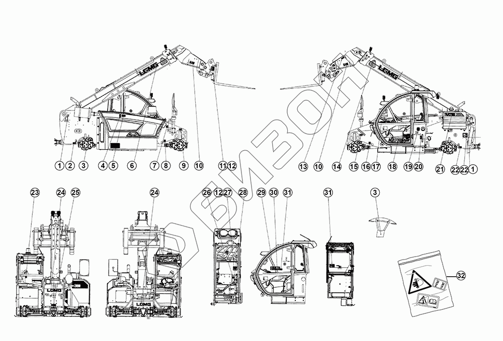 | 9 | 25340051091 | Наклейка - Подъем и нагрузка на колеса-H735 (RH) |