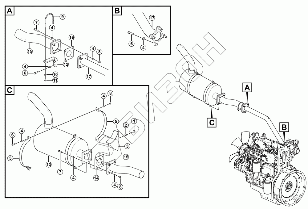 Графический каталог запасных частей к технике: LGMG HA735. Система выпуска отработавших газов