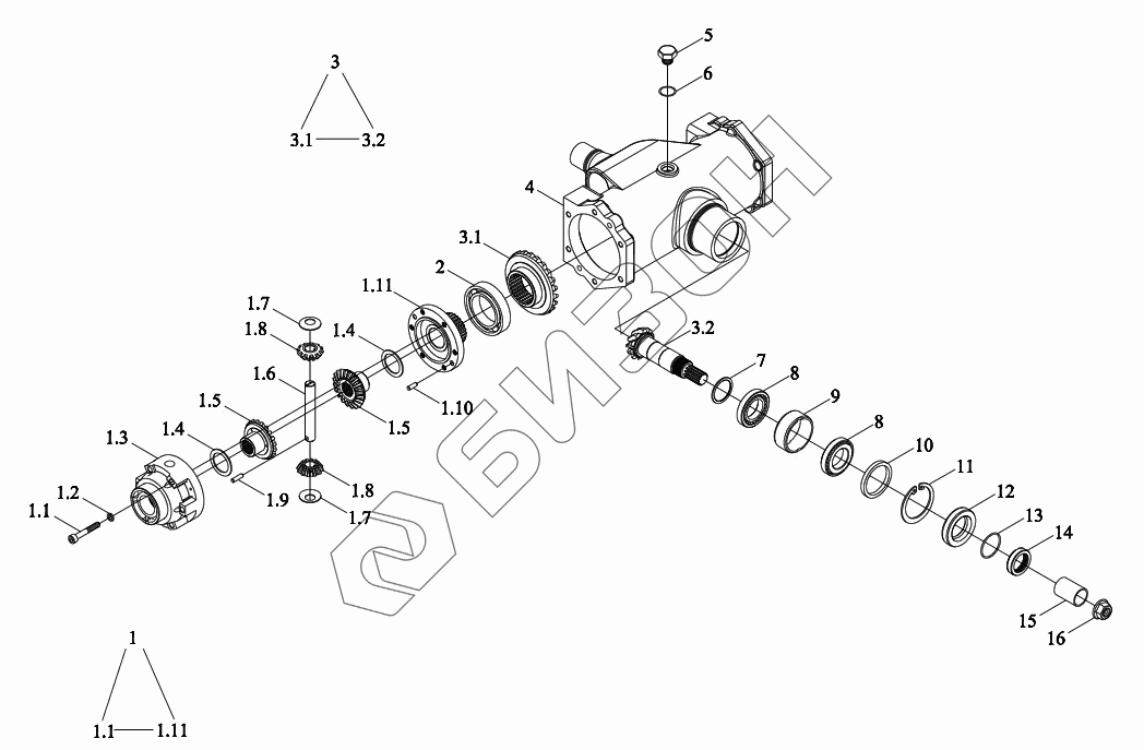 Графический каталог запасных частей к технике: LOVOL TB1CA504-012K. Дифференциал