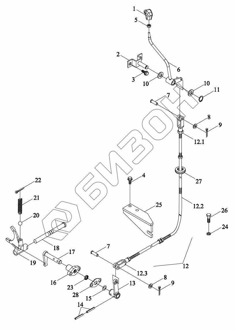 Графический каталог запасных частей к технике: LOVOL TB1CA504-012K. Механизм управления челночным переключением передач