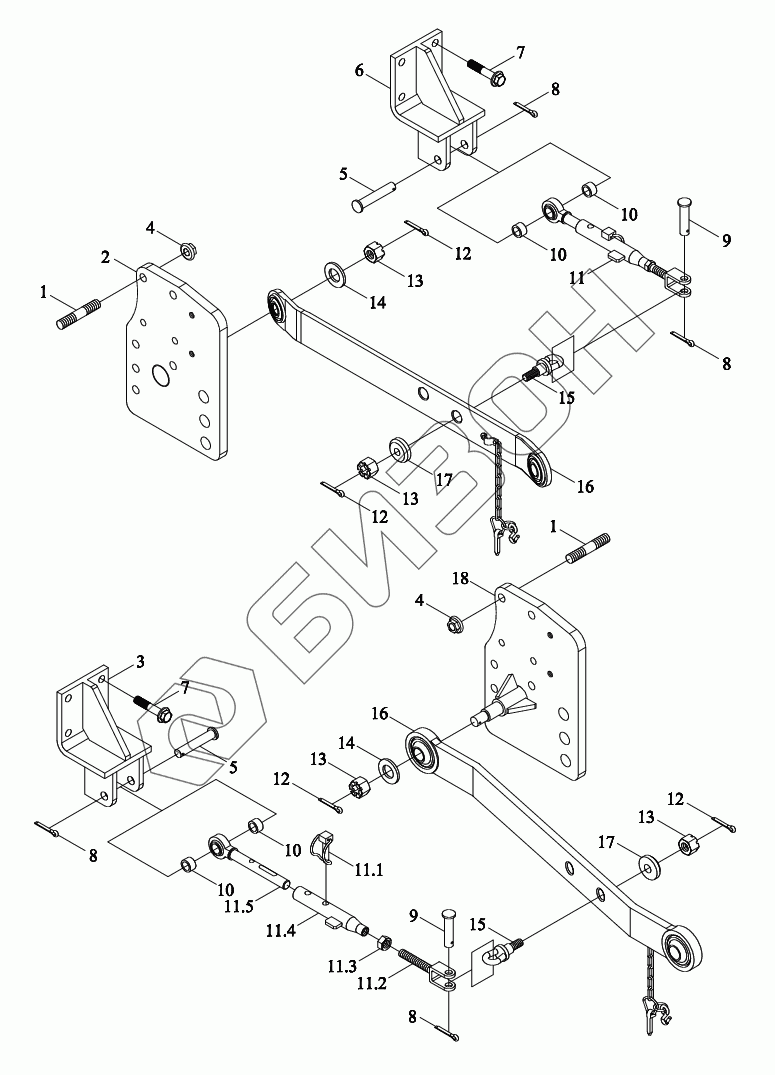 | 9 | GBT882-B18X55-A0P | Ось штыря |