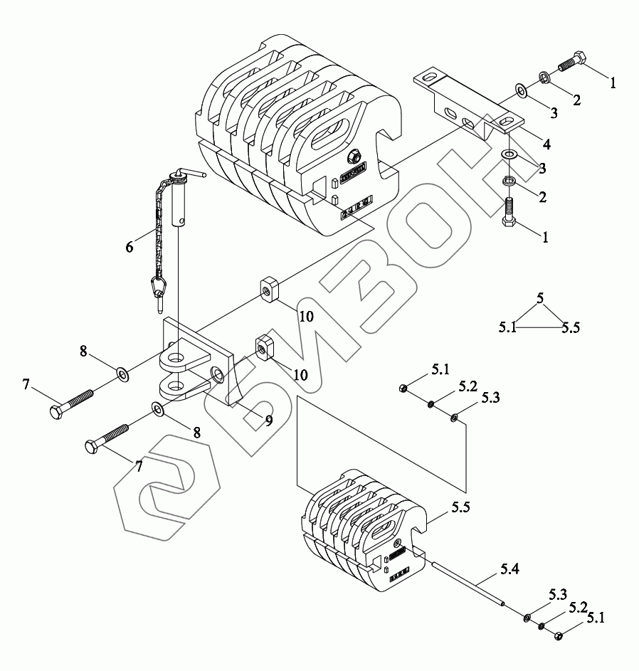 | 6 | TB400.74A.2 | Буксировочный палец и блокировочный палец в сборе |