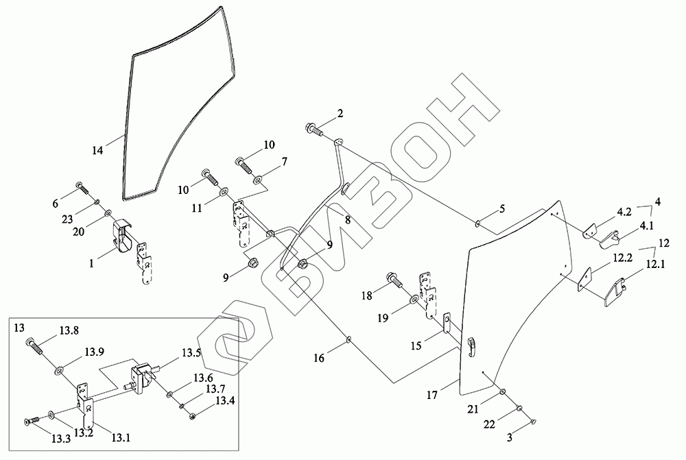 | 13.1 | TS06451013116 | Кронштейн крепления замка левой двери |