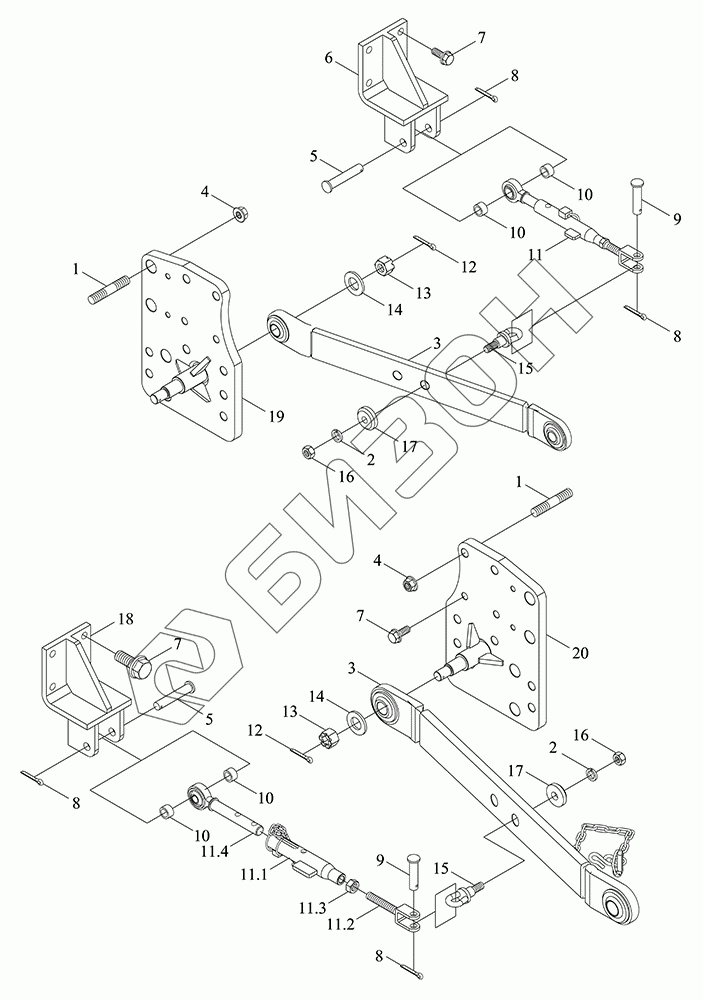 | 9 | GBT882-B18X55-A0P | Ось штыря |