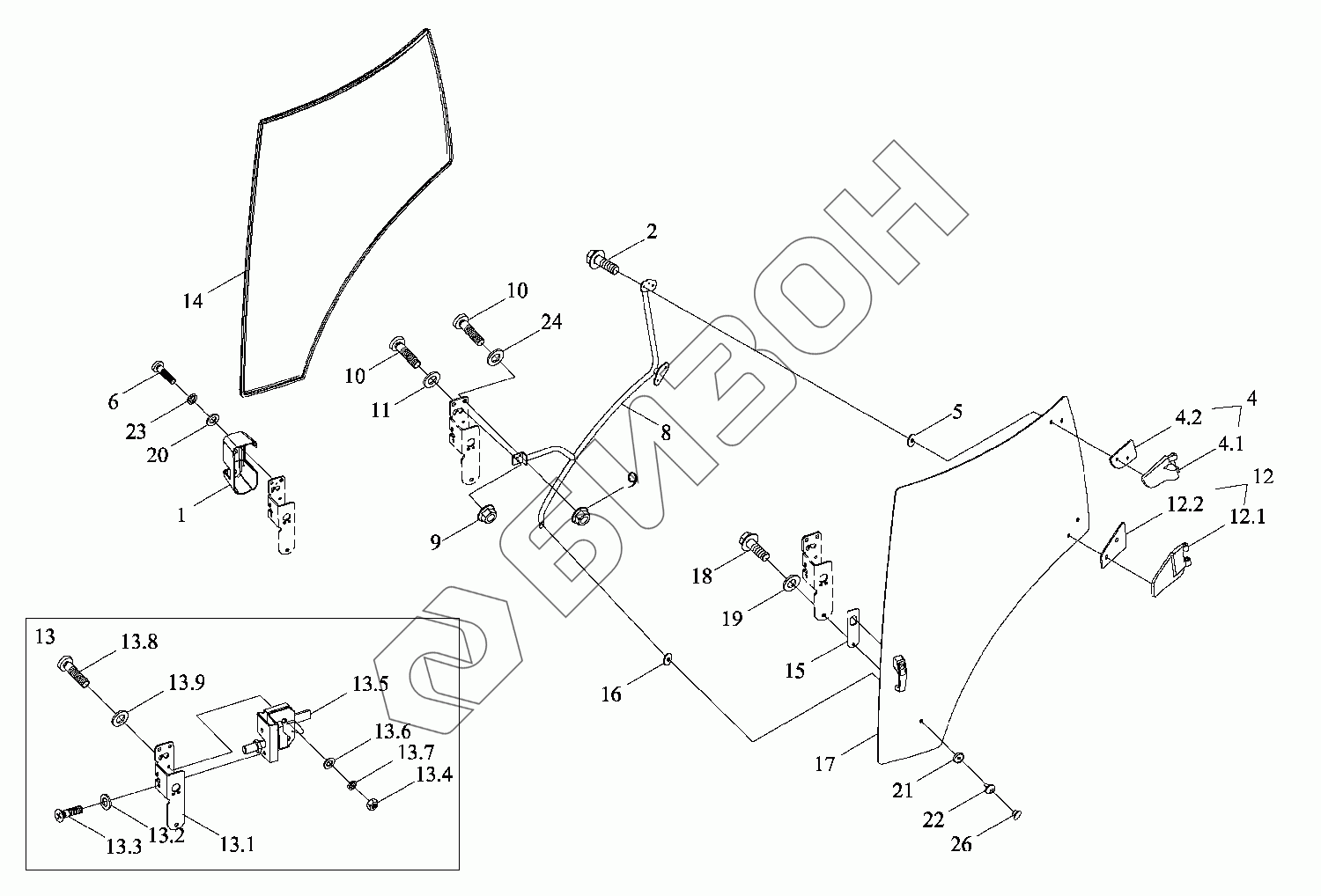 | 13.1 | TS06451013116 | Кронштейн крепления замка левой двери |