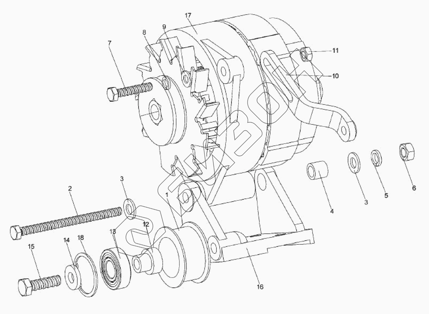 Графический каталог запасных частей к технике: LOVOL TB2SA604-007K. Генератор