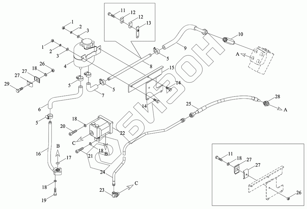 | 4 | TS04402010019 | Бачок масляный рулевого механизма и адсорбер в сборе |