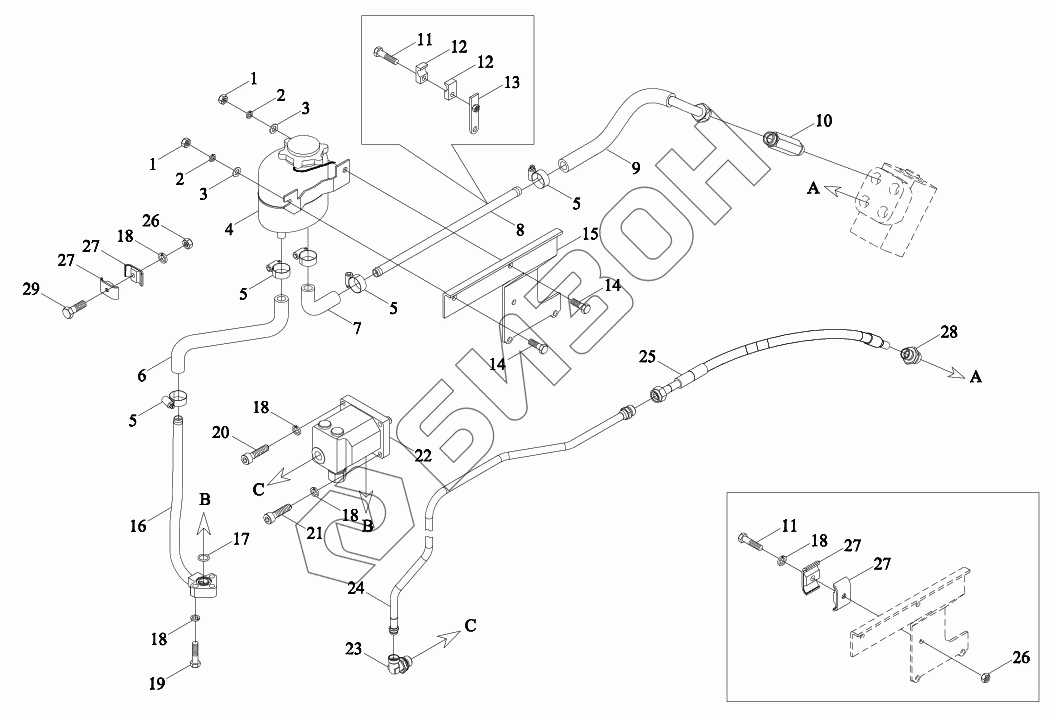 4 TS04402010019 Бачок масляный рулевого механизма и адсорбер в сборе