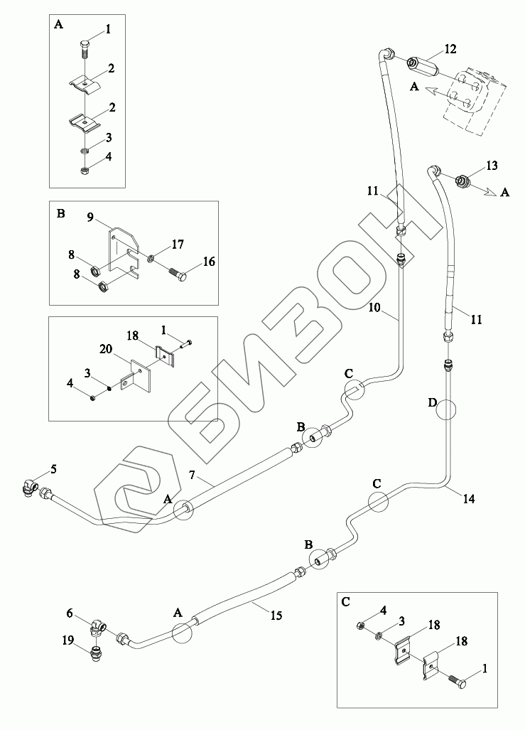 Графический каталог запасных частей к технике: LOVOL TB3SA754-019K. Гидравлический поворотный трубопровод 2