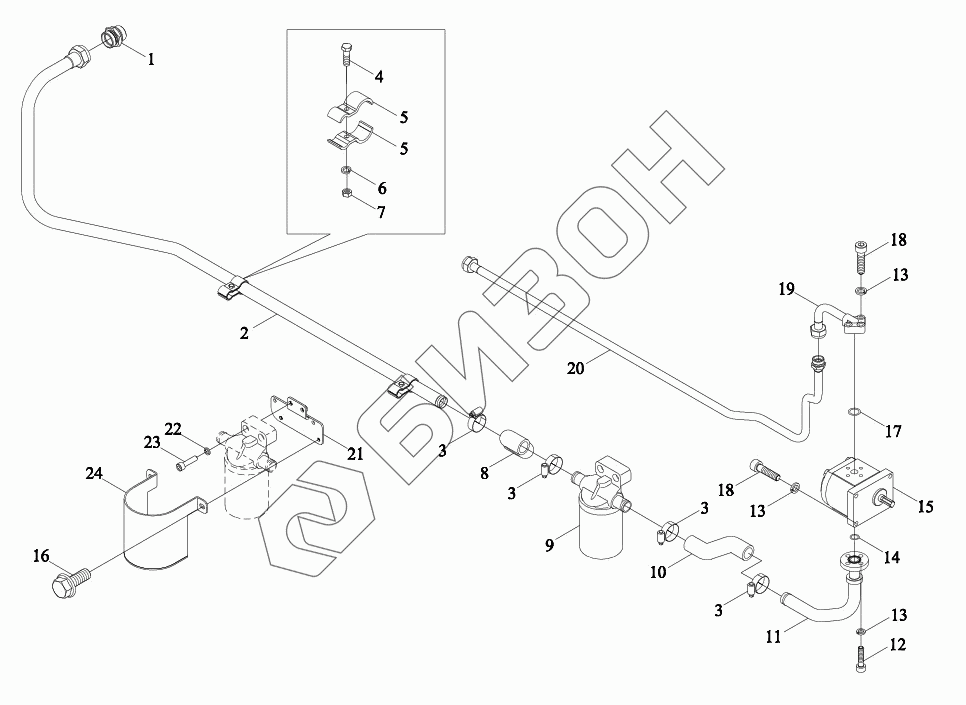 Графический каталог запасных частей к технике: LOVOL TB3SA754-019K. Масляный фильтр маслопровода масляного насоса