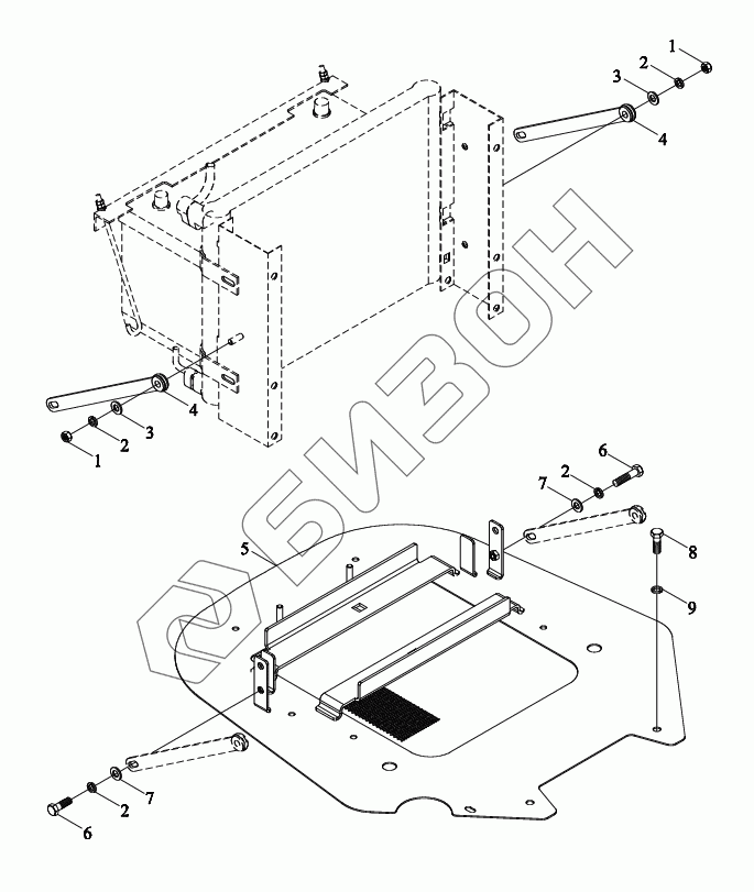 Графический каталог запасных частей к технике: LOVOL TB3SA754-019K. Монтажный блок прокладки радиатора