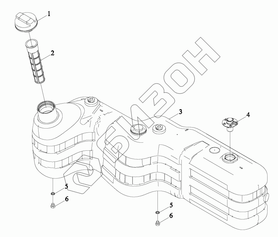 Графический каталог запасных частей к технике: LOVOL TB3SA754-019K. Монтажный блок топливного бака 2