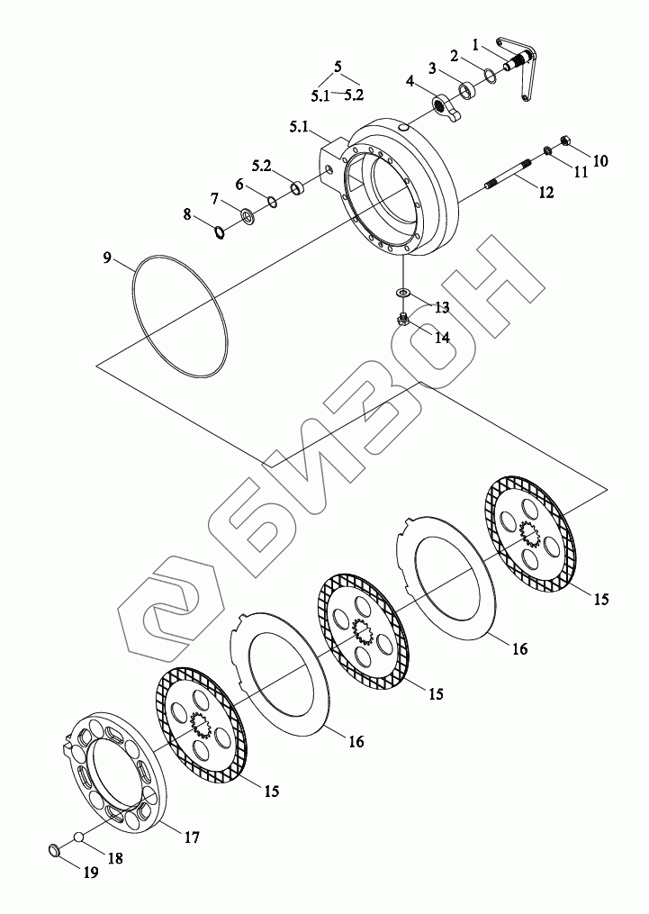Графический каталог запасных частей к технике: LOVOL TB3SA754-019K. Правый тормоз