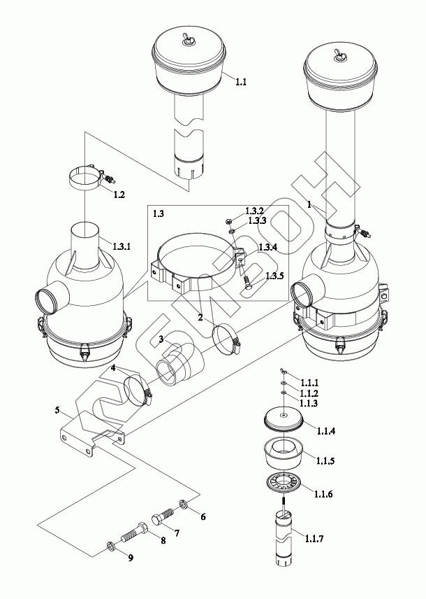 | 1.3.4 | TB550.11E.1.1.2 | Кронштейн воздушного фильтра |