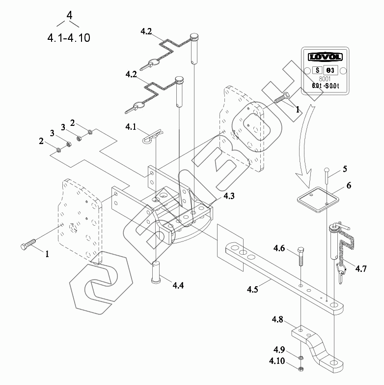 Графический каталог запасных частей к технике: LOVOL TB3SA754-019K. Установка тяговая