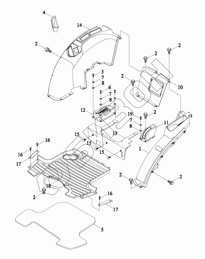Графический каталог запасных частей к технике: LOVOL TB3SA754-019K. Внутренний молдинг 2