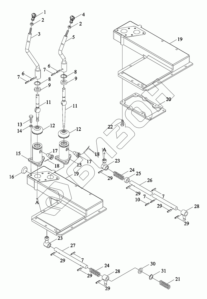 Графический каталог запасных частей к технике: LOVOL TD1SA1054-002K. Боковой механизм управления 2