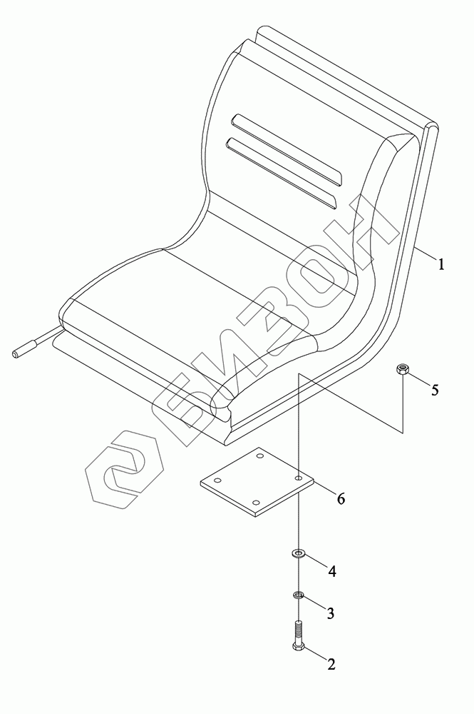 Графический каталог запасных частей к технике: LOVOL TD1SA1054-002K. Монтаж сиденья в сборе