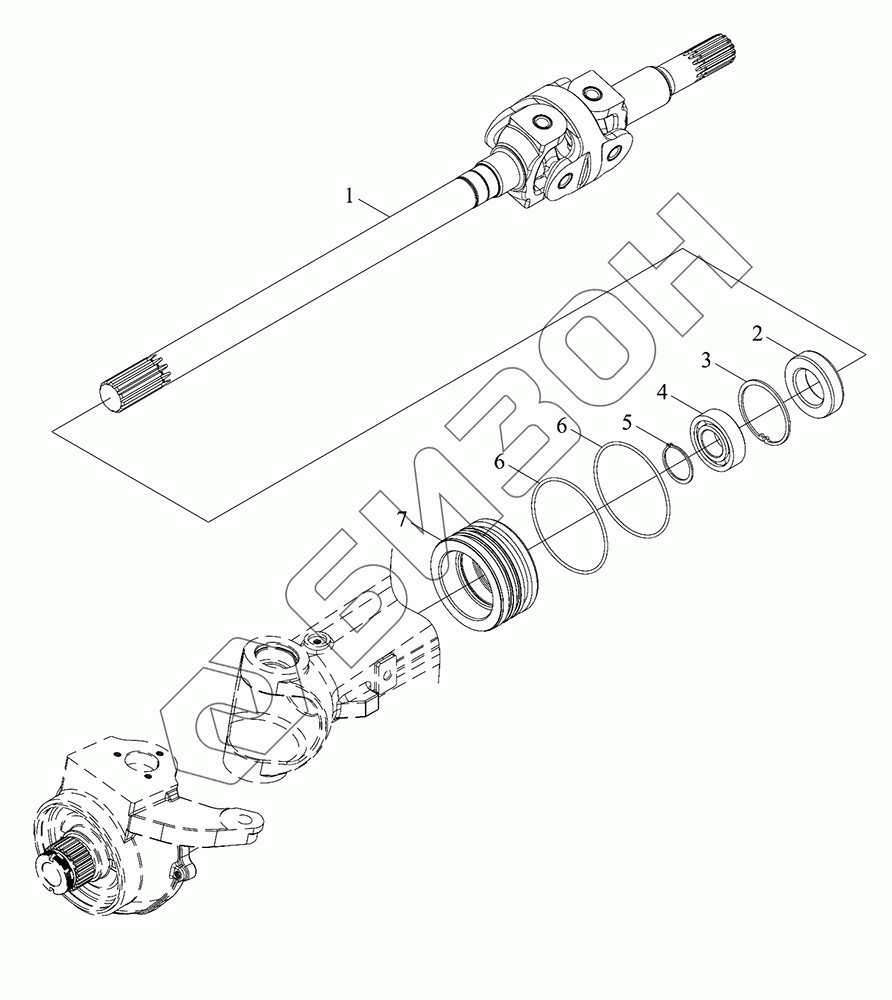 Графический каталог запасных частей к технике: LOVOL TD1SA1054-002K. Полуось правая