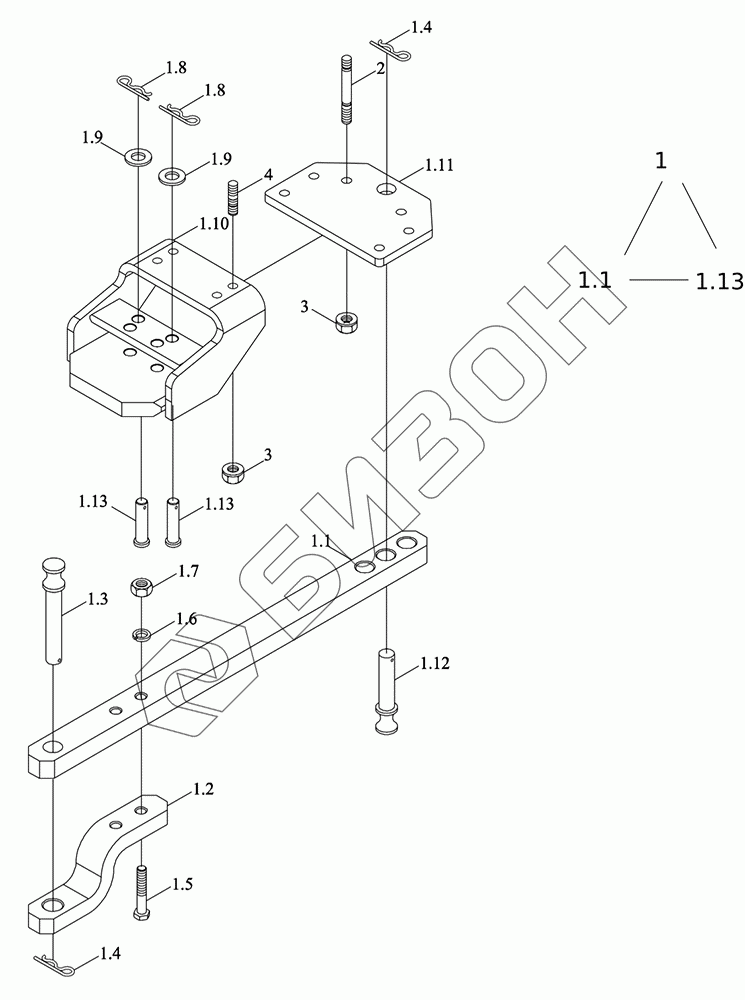Графический каталог запасных частей к технике: LOVOL TD1SA1054-002K. Тяговое устройство в сборе