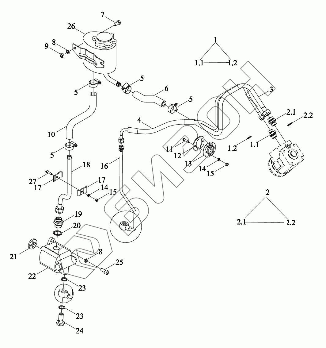 | 26 | TD1100.402B.1 | Масляный бачок рулевого механизма и адсорбер в сборе |