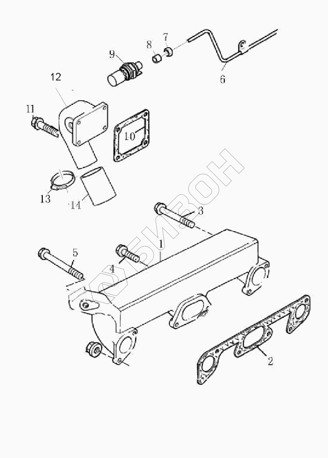 Графический каталог запасных частей к технике: LOVOL TD1SA904-029K. Коллектор впускной